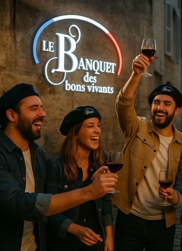 Entrez dans l’univers des Bons Vivants : une expérience où la bonne cuisine rencontre l’ambiance des grands banquets. Longues tables dressées, repas authentiques, vins soigneusement choisis, musique, fête et convivialité… Tout est pensé pour vous faire vivre une journée où le temps s’arrête et où la joie prend le dessus.